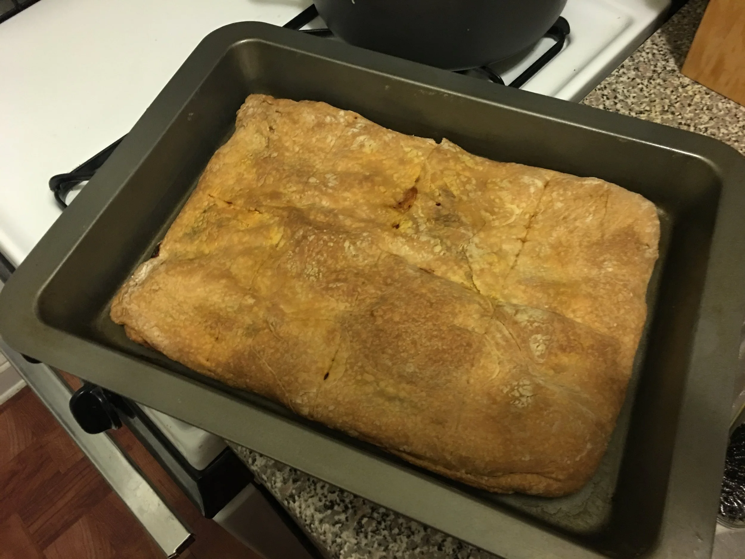 7. Bake for minimum 1 hour at 350°F (or 375°F if your oven runs cooler) until golden brown along the edges.